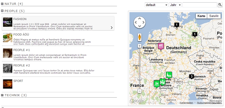 the items sorted by the filter_0 (catalogs) and animated with javascript, the map, and two filters as drop down