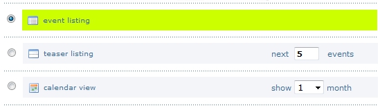 then you choose what kind of frontend output you need; event listing, teaser listing or minicalendar