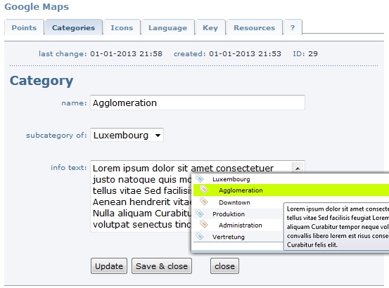 The info text for the category is still there although not used until now. We added it to the tooltip in the listing now, so it makes at least a little bit of sense.