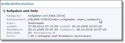 Artikel, die zugangsgesichert werden sollen, werden innerhalb der Artikelbasisinformation in den Schlüsselwörtern entsprechend „getaggt“.