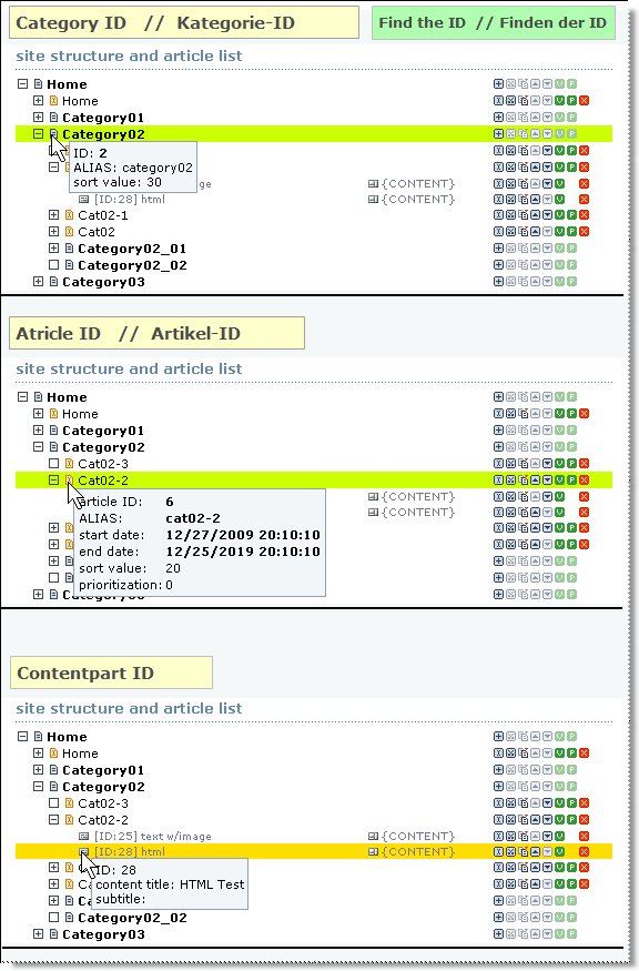 Eine Kategorie kann mehrere Artikel beinhalten, die abhängig vom eingestellten Modus dargestellt werden.