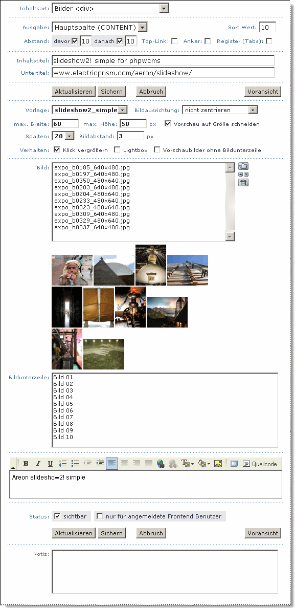 Komplettes Paket mit Template, PHP-Script und Aeron-slideshow2! Dateien.