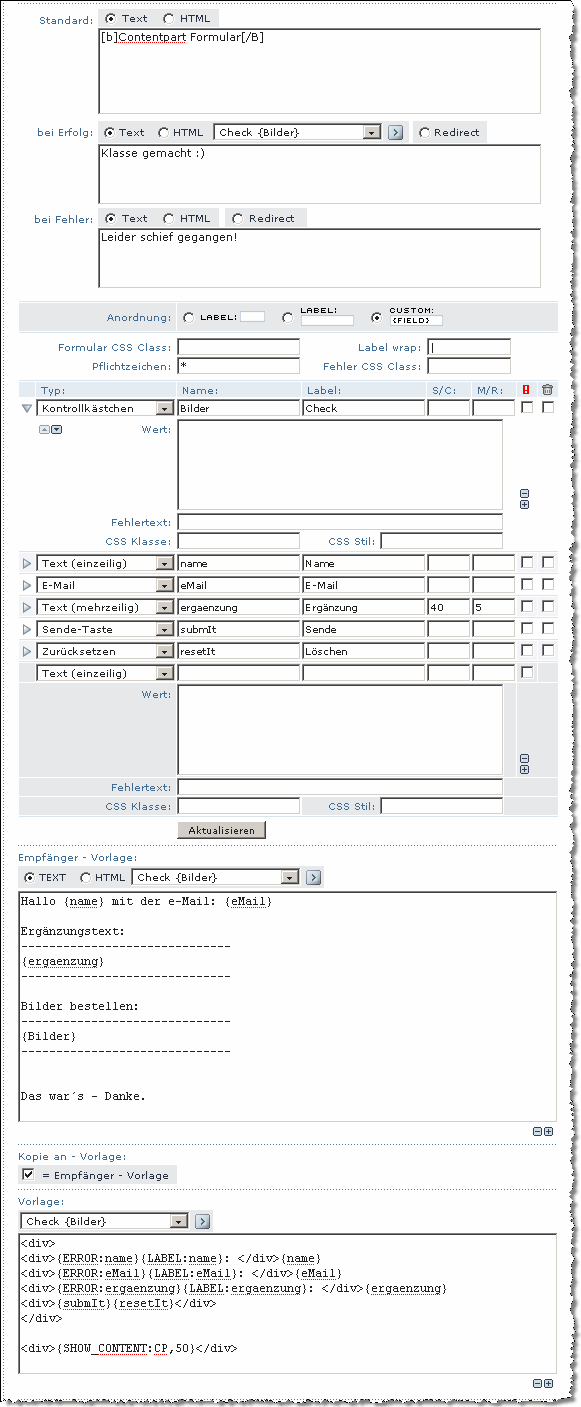 Contentpart in einem Formular ausführen und Input-Daten generieren, (manipulieren) und versenden.