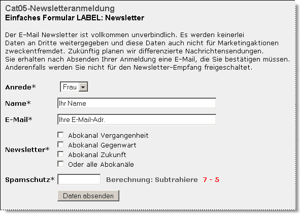 Formularfeld Newsletter: