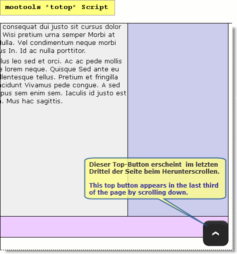 A Toplink button appears autom. on the side (fade in/out) when approximately 2/3 of the page length is reached by scrolling.