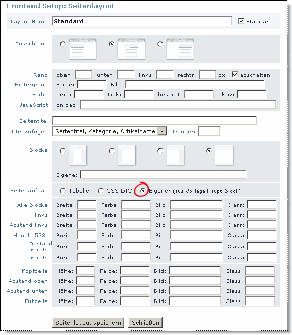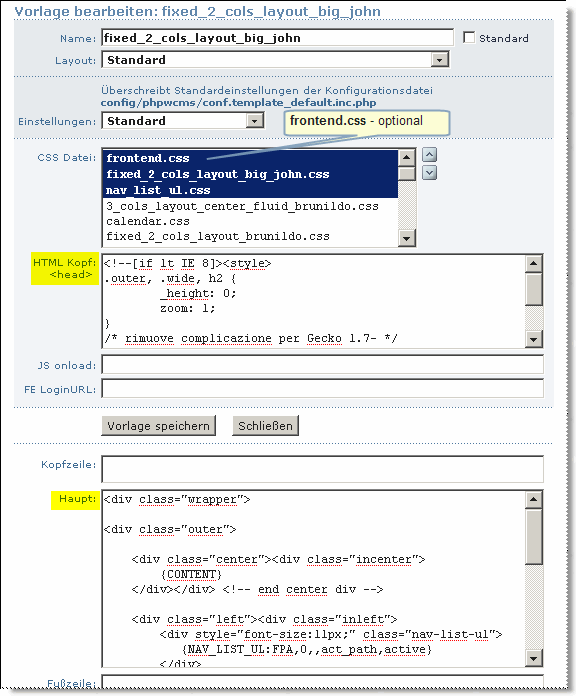 –> Set this code snipped in the main-area (Haupt:) of the template: