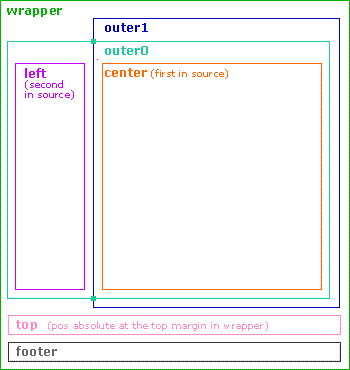 <div class="wrapper"> <div class="outer1"><div class="outer0"> <div class="center"><div class="incenter"> {CONTENT} </div></div> <!-- end center div --> <div class="left"><div class="inleft"> <div style="font-size:11px;" class="nav-list-ul"> {NAV_LIST_UL:FPA,0,,act_path,active} </div> {LEFT} </div></div> <!-- end left div --> <br class="clear" /> </div></div> <!-- end outer div --> <div class="top"><div class="intop"> <h1>Fixed 2 cols layout</h1> {HEADER} </div></div> <div class="bottom"><div class="inbottom"> {FOOTER} </div></div> </div>